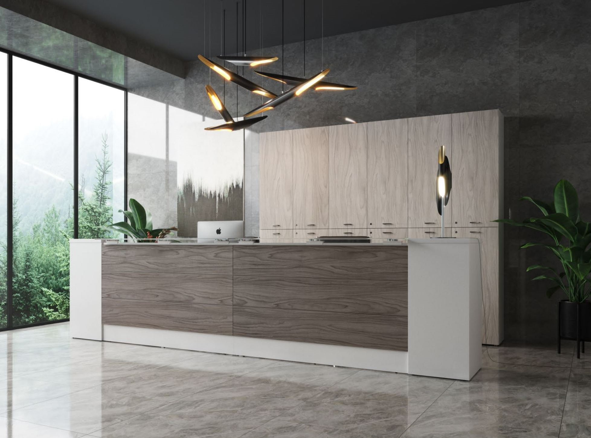 La reception è il biglietto da visita dell'Azienda. Deve conferire un design unico che rappresenti perfettamente l'immagine dell'Azienda stessa senza tralasciare l'aspetto della praticità operativa per creare un ambiente unico, confortevole e personalizzato sulle specifiche esigenze.